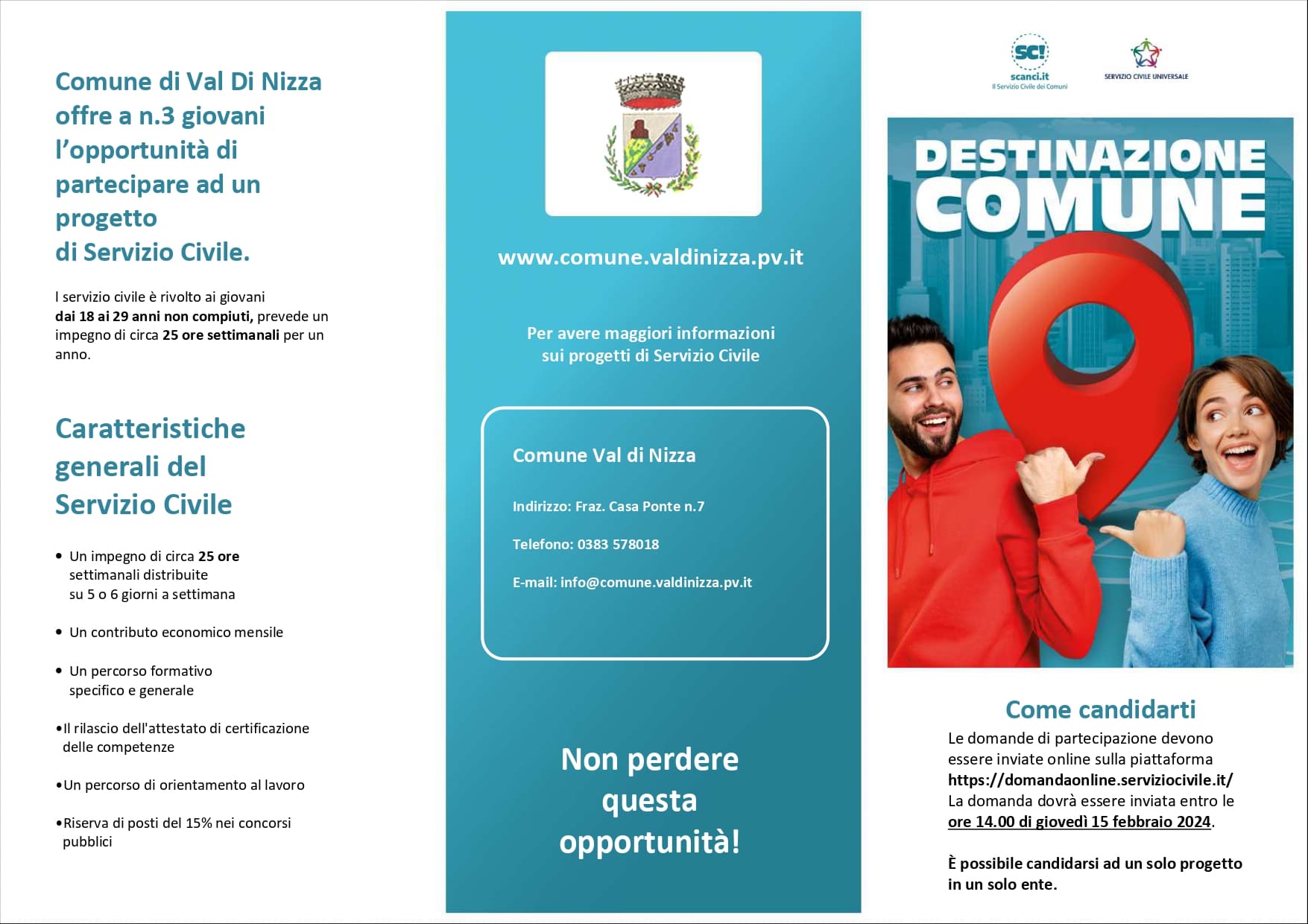 Descrizione Bando di servizio civile universale 2023 - Scadenza alle ore 14.00 del 15 febbraio 2024 Galleria fotografica Numero immagini: 1 Bando Servizio Civile Ultimo aggiornamento pagina: 08/02/2024 15:52:43