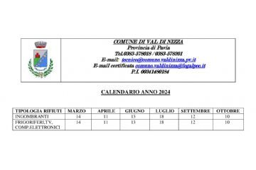 Descrizione Calendario raccolta rifiuti ingombranti 2024 Galleria fotografica Numero immagini: 1 Calendario Ingombranti Ultimo aggiornamento pagina: 08/02/2024 15:59:54