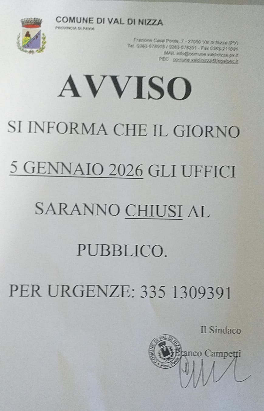 Chiusura uffici comunali 05.01.2026