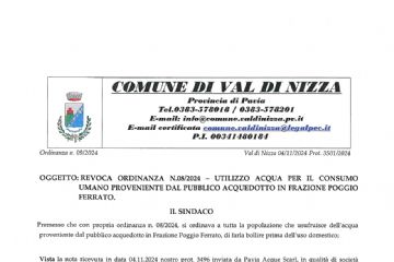 Ordinanza n.9/2024: Revoca Ordinanza n.08/2024 – utilizzo acqua per il consumo umano proveniente...